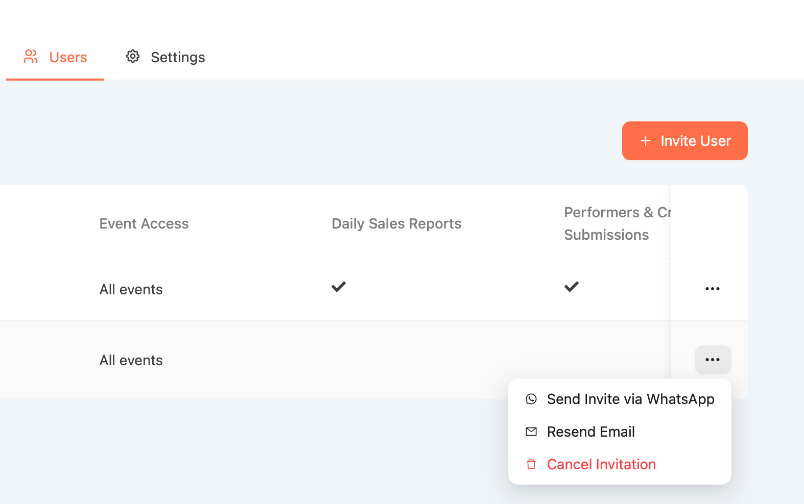 Resend the invite: Open the user list, tap the 3-dot menu next to their name, and select *Resend Email *