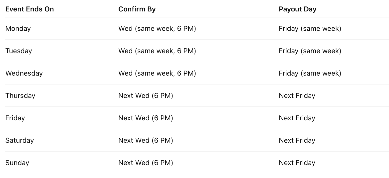 This guide breaks down when to confirm, when to expect the payout, and what happens if there's a public holiday.