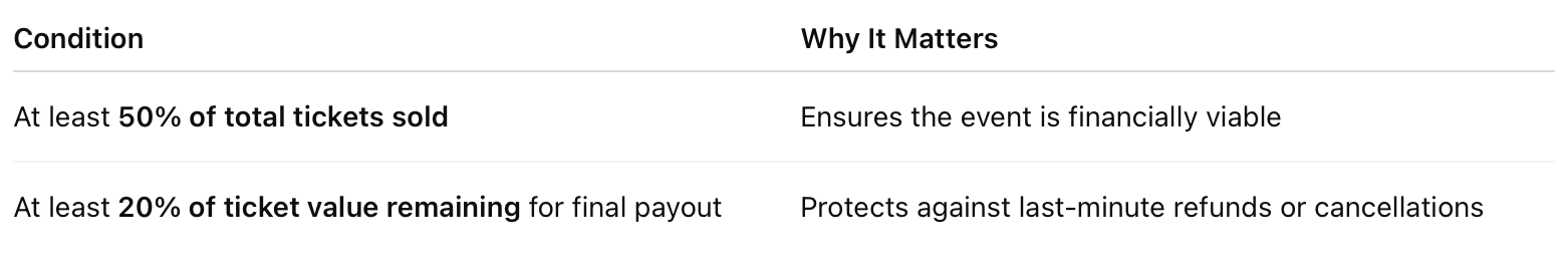 Remaining ticket revenue will be included in the final settlement after your event ends