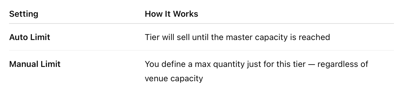 Not all ticket tiers go on sale at the same time — and that’s the point. Maybe your “Early Bird” ends a week before “General Admission” starts. Or your VIP seats close earlier due to printing needs.