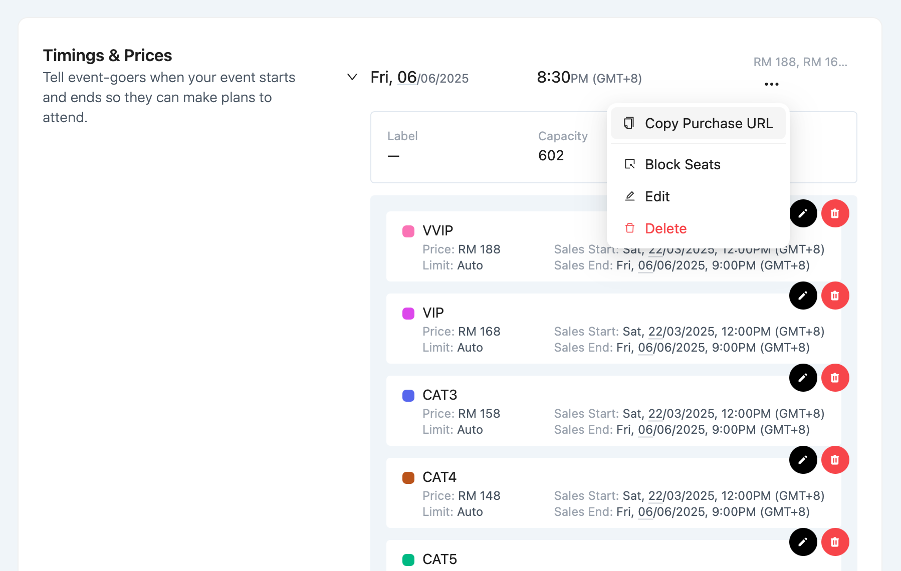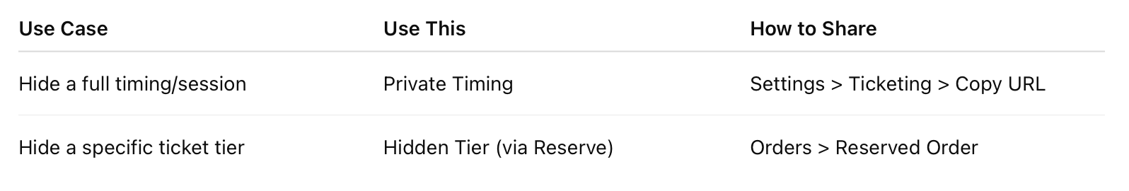 Hidden Ticket Tiers – ticket types like concessions or internal rates, only used via reserve order flow
