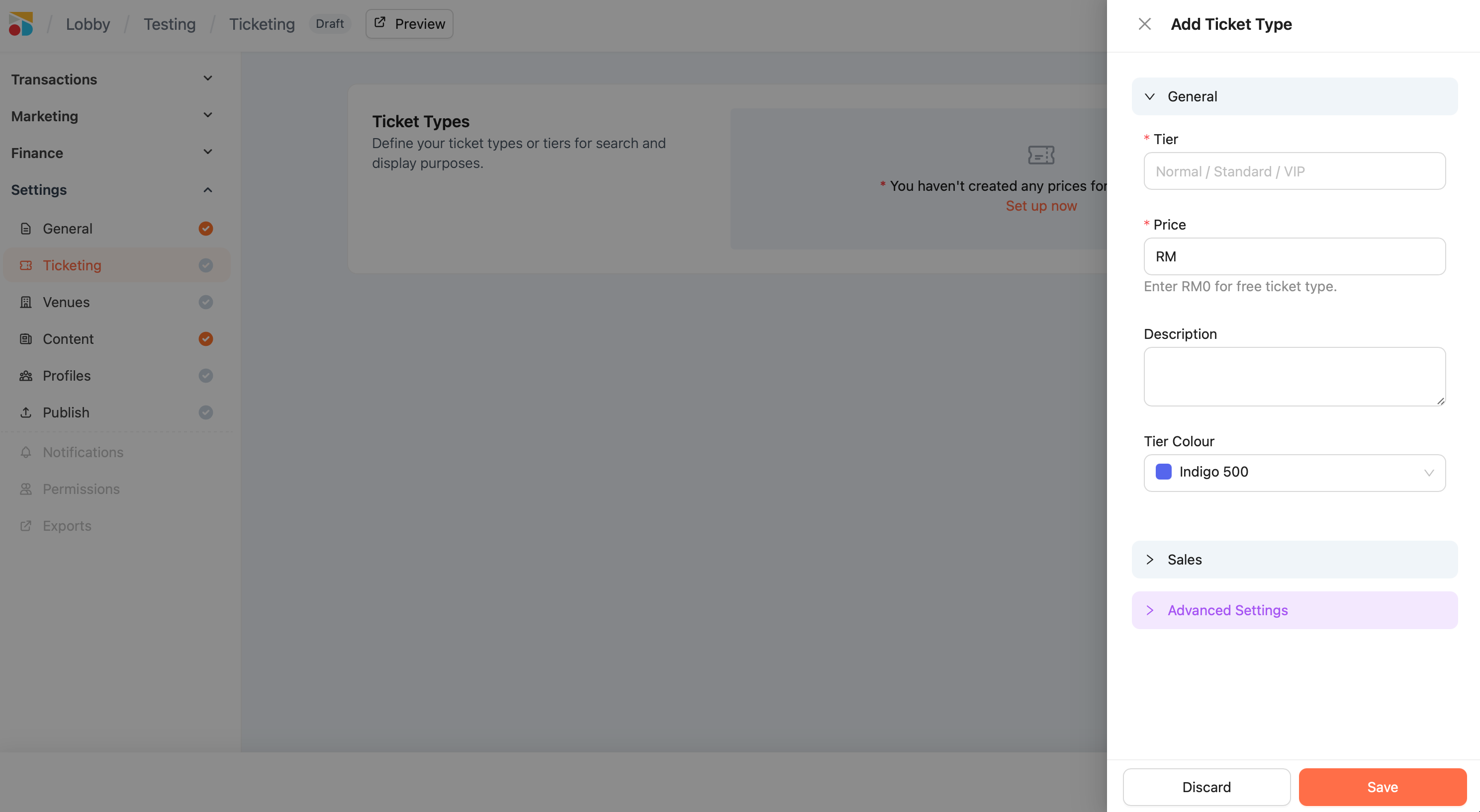 Adding a Ticket Type
